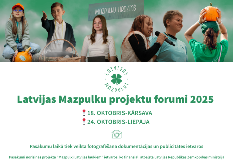 Vai esi gatavs atklāt Meža bagātības un iemūžināt Mežu rudenī?Biedrība “Latvijas Mazpulki” aicina bērnus un jauniešus piedalīties divos radošos konkursos, kas notiek projekta “Meža taku noslēpumi” ietvaros ar Meža attīstības fonda atbalstu. Zīmējumu konkurss “Meža bagātības”Iedvesmojies no dabas un parādi, ko mežs mums dāvā!Darbus var iesniegt līdz 2025. gada 1. decembrim, nosūtot tos uz Mazpulku…