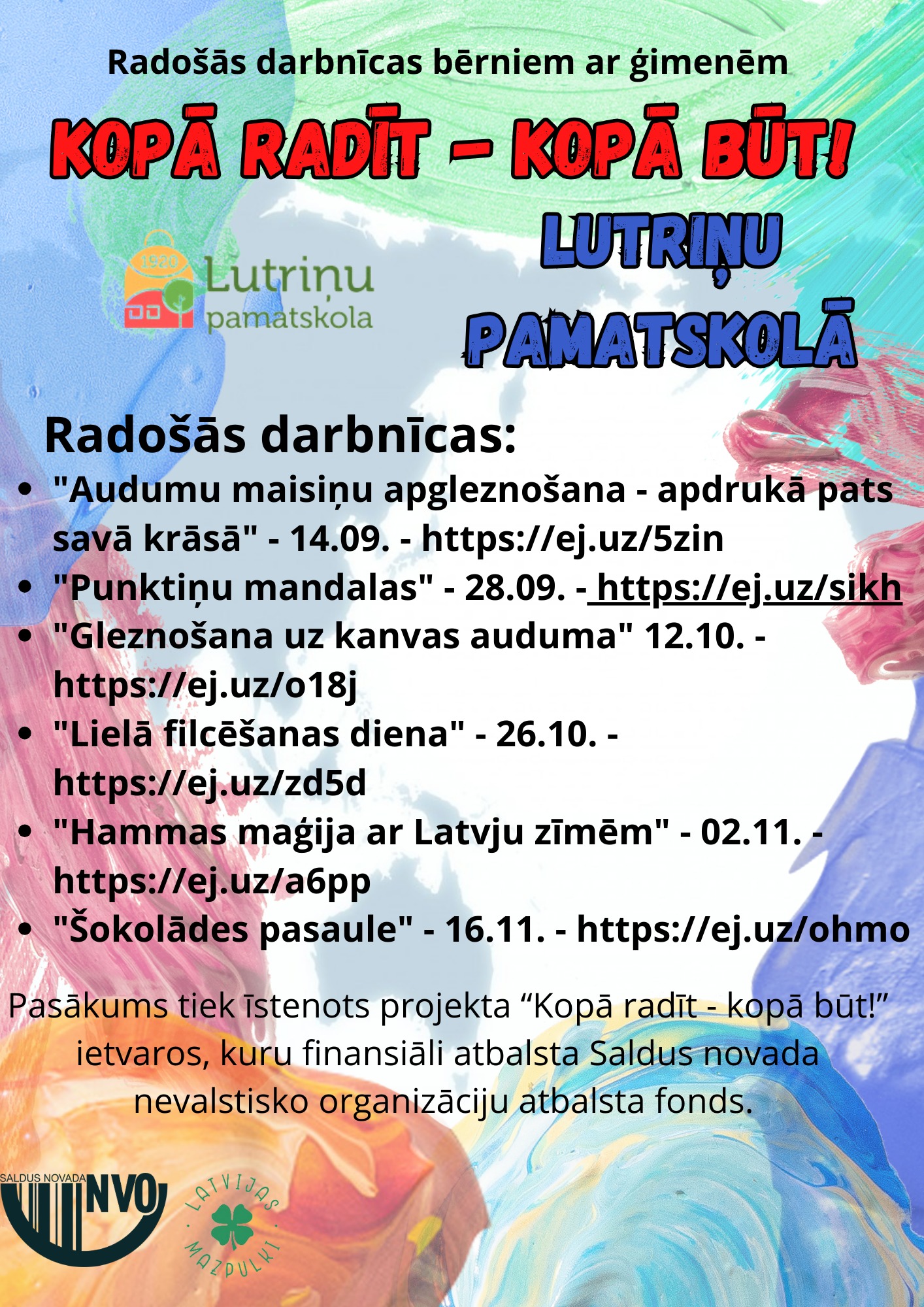 Radošās darbnīcas tiek īstenotas ar Saldus novada nevalstisko organizāciju fonda atbalstu